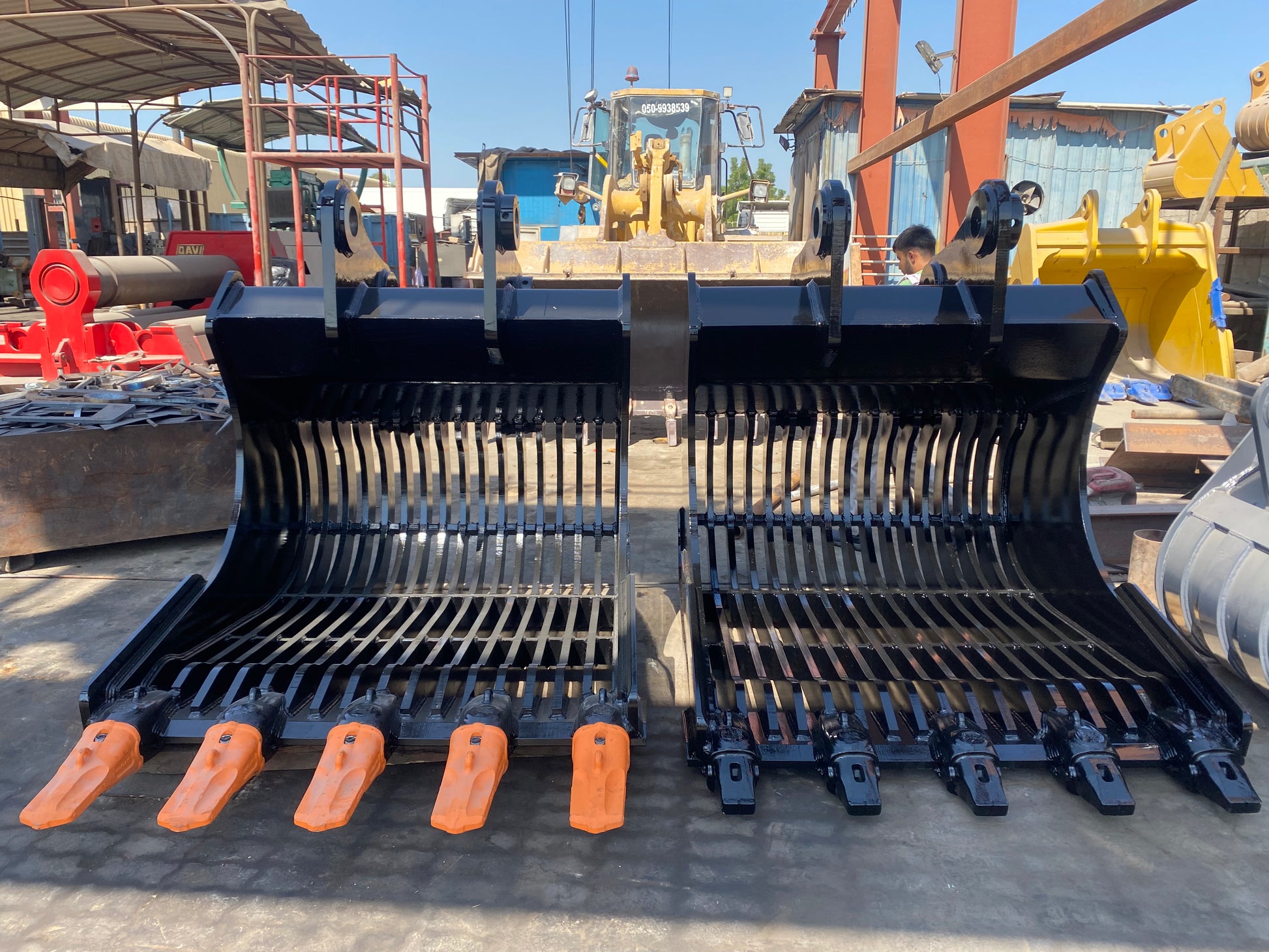 We are one of the leading manufacturers and exporters of excavator skeleton buckets in all sizes. Our Skeleton Buckets are manufactured according to customer-specific requirements and are designed for efficient material sorting and screening. For heavy-duty applications, we use premium wear-resistant materials such as Hardox and Dillidur to ensure superior strength, durability, and extended service life.